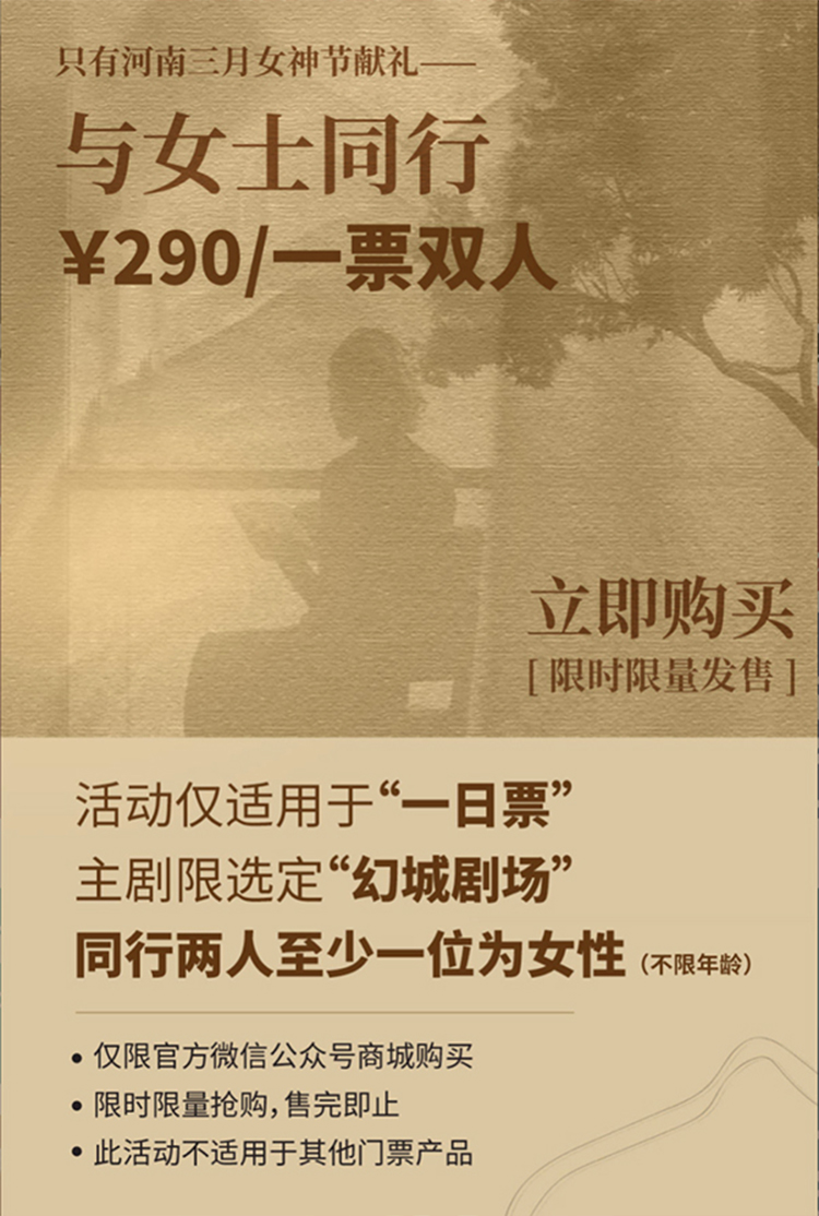 只有河南3月女神節(jié)獻禮,與女士同行,一票雙人,限時限量發(fā)售。