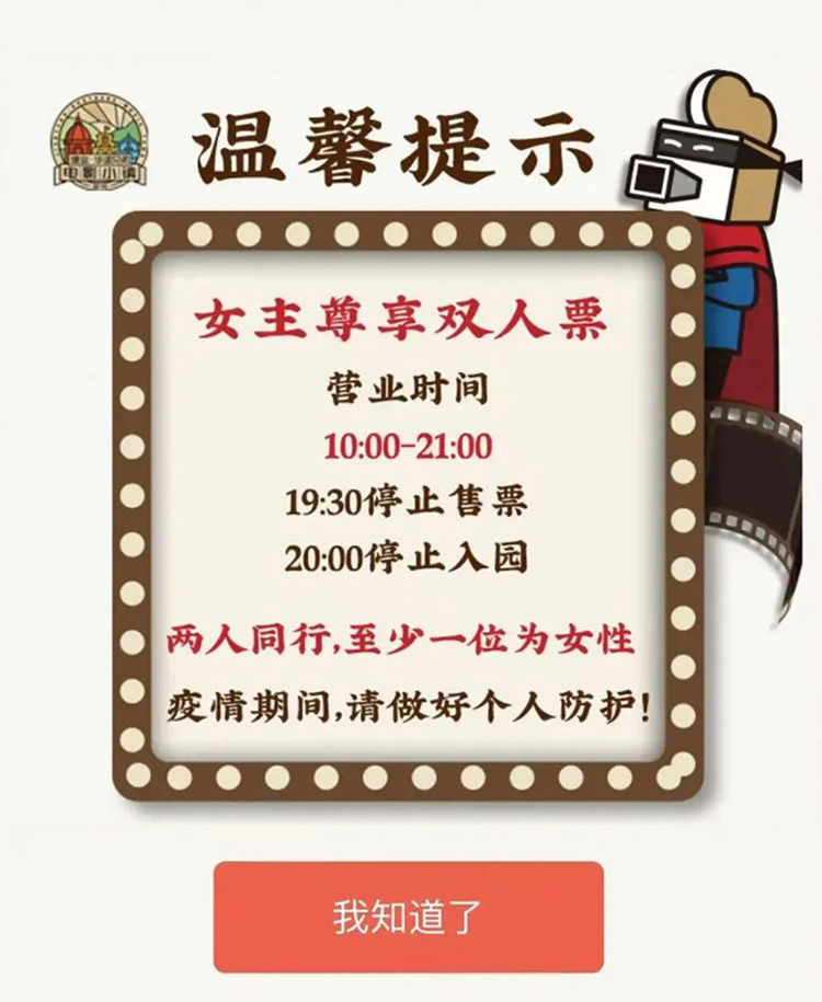 3月來電影小鎮(zhèn)做女主,女主雙人福利:與女生同游,一人免單。