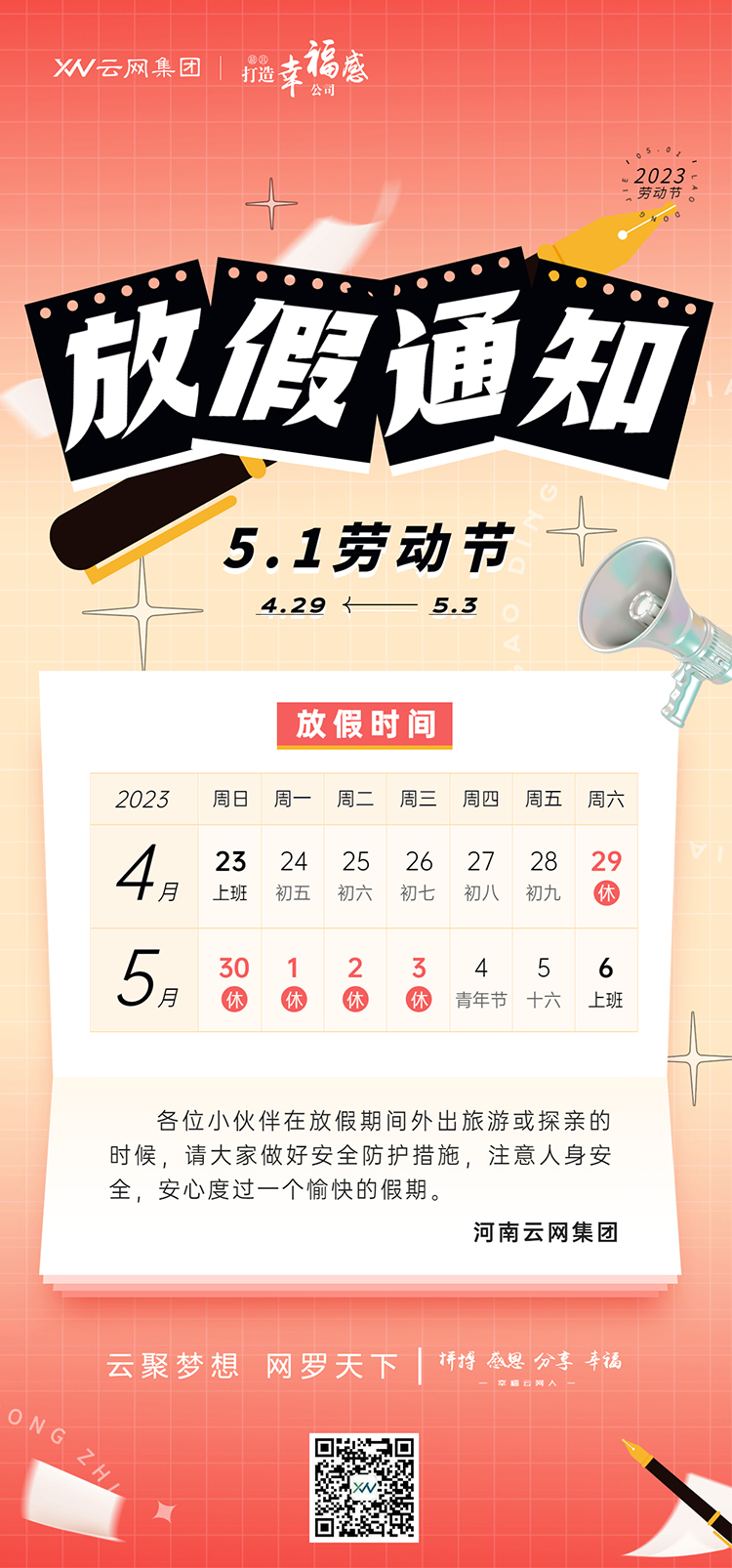 云網(wǎng)集團(tuán):五一放假通知 | 假期去哪玩兒?