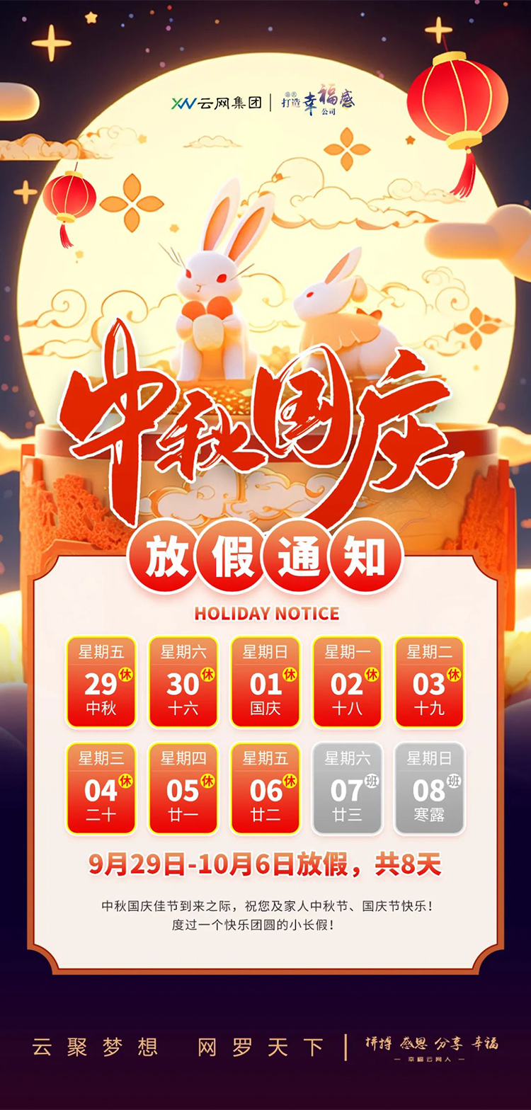 中秋/國(guó)慶佳節(jié)將至,根據(jù)國(guó)家法定假期規(guī)定,并結(jié)合我司實(shí)際情況,